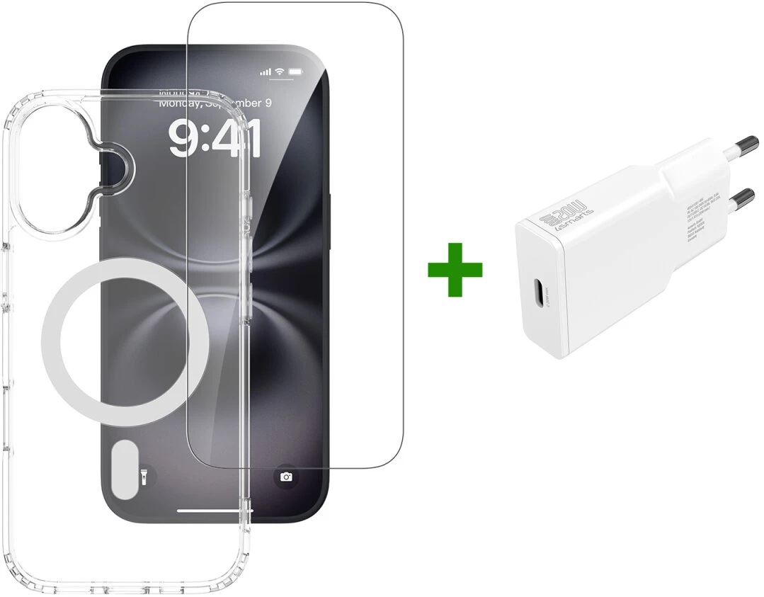 Rundum-Set: Mach den Start mit deinem neuen iPhone 17 zum Kinderspiel mit unserem 3in1 Starter-Set. Ein leistungsstarkes 20-Watt-Netzteil für schnelles Aufladen, ein 9H-Schutzglas zur Bewahrung deines Bildschirms und eine stylische MagSafe-kompatible Hülle zum Schutz und zur Präsentation deines Geräts. Ein Must-Have für jeden neuen iPhone-Besitzer, der Wert auf Schutz, Komfort und Style legt.